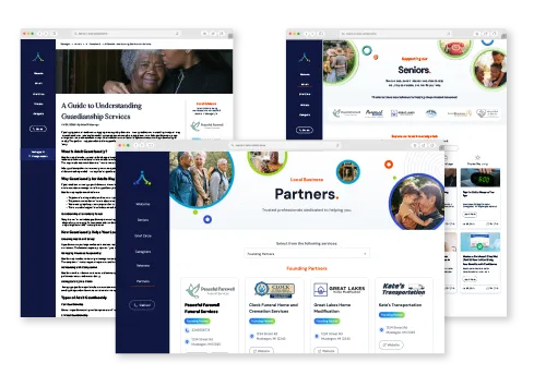 When she clicks through from your Facebook posts, she discovers a comprehensive community website with expert-backed resources supporting aging adults, caregivers, veterans, and those who are grieving. She can also access a community calendar featuring local events, support groups, and educational workshops. Your logo appears throughout, linking back to your funeral home and reinforcing your place in her circle of trusted local voices.